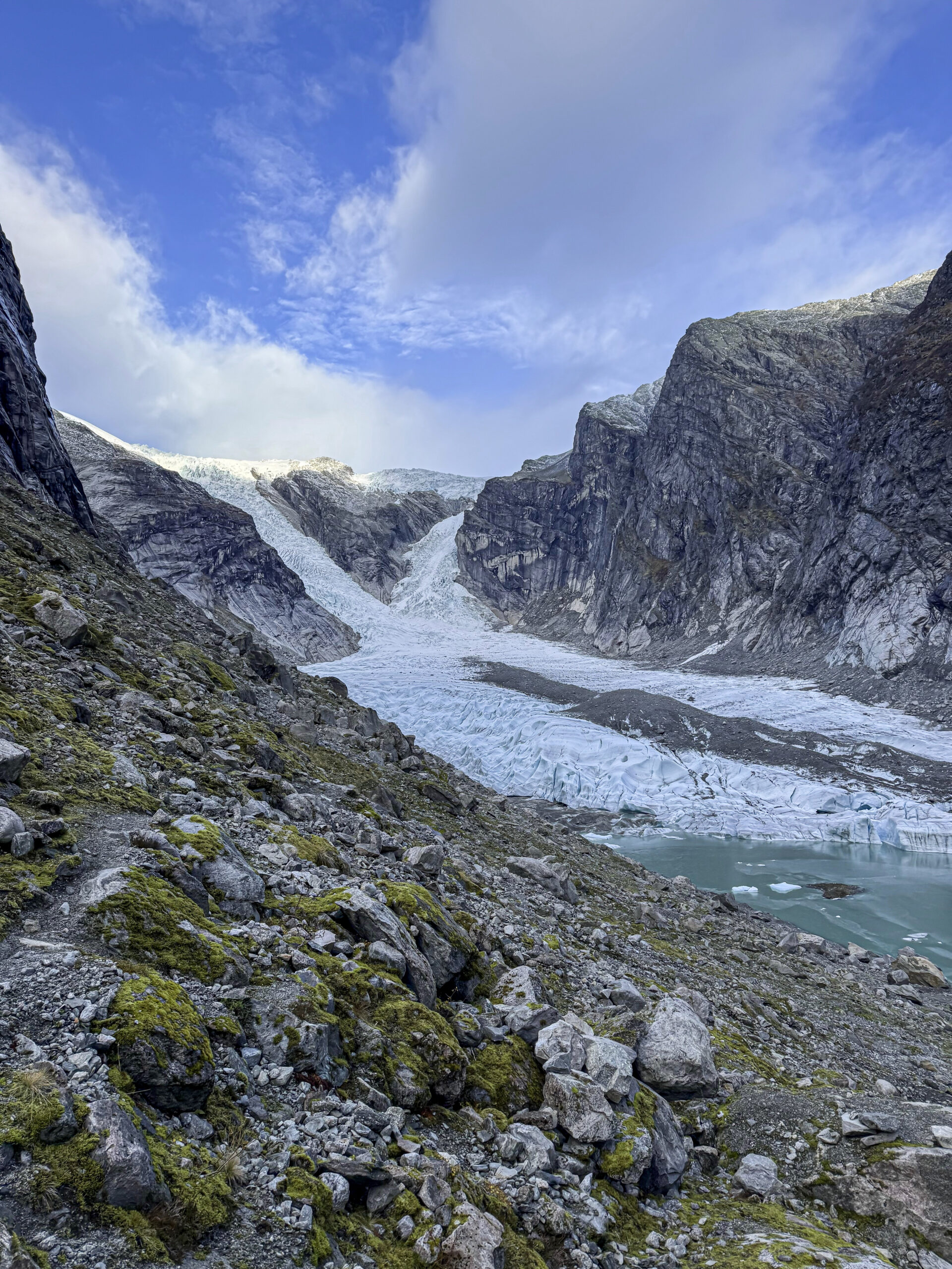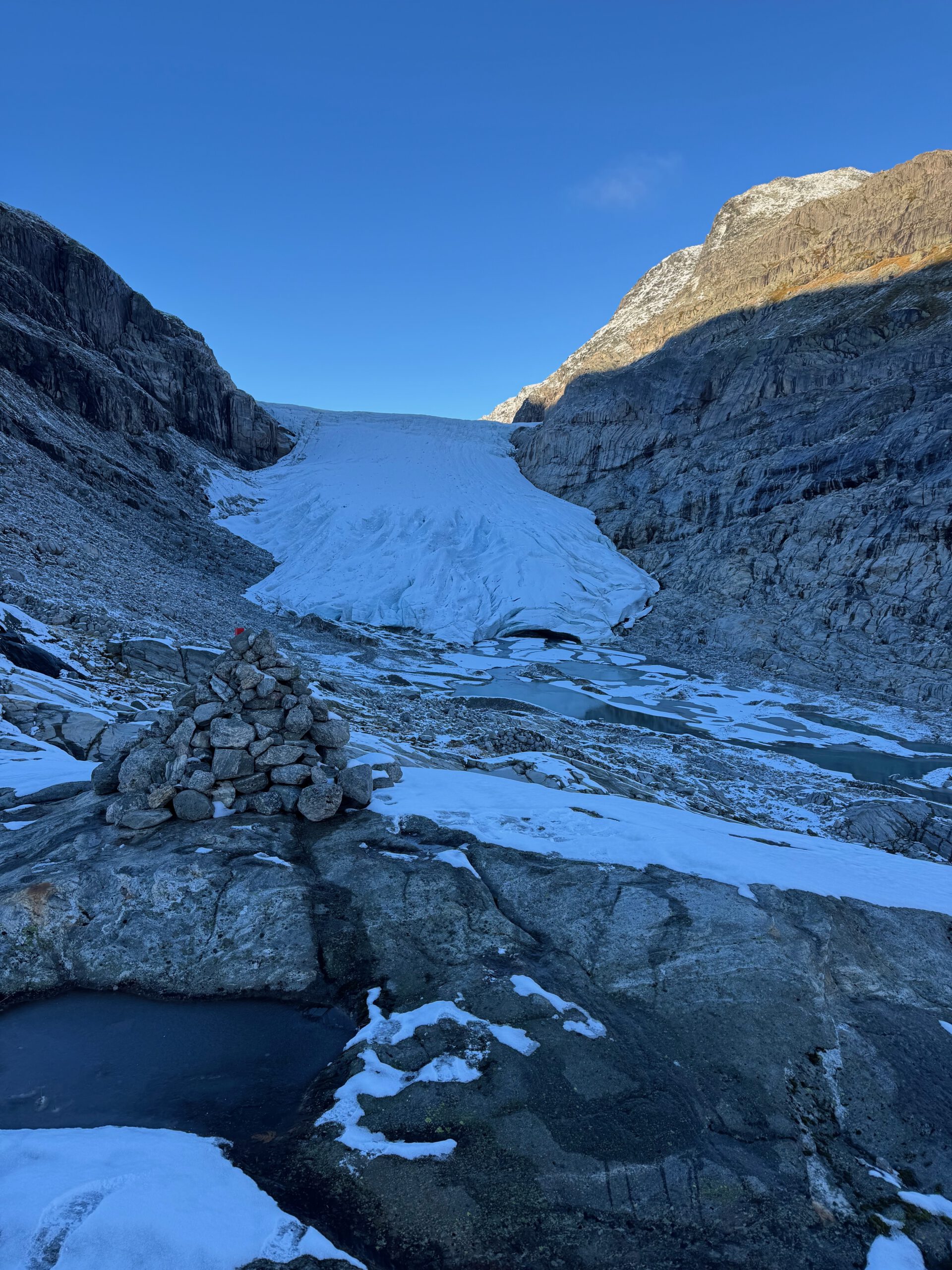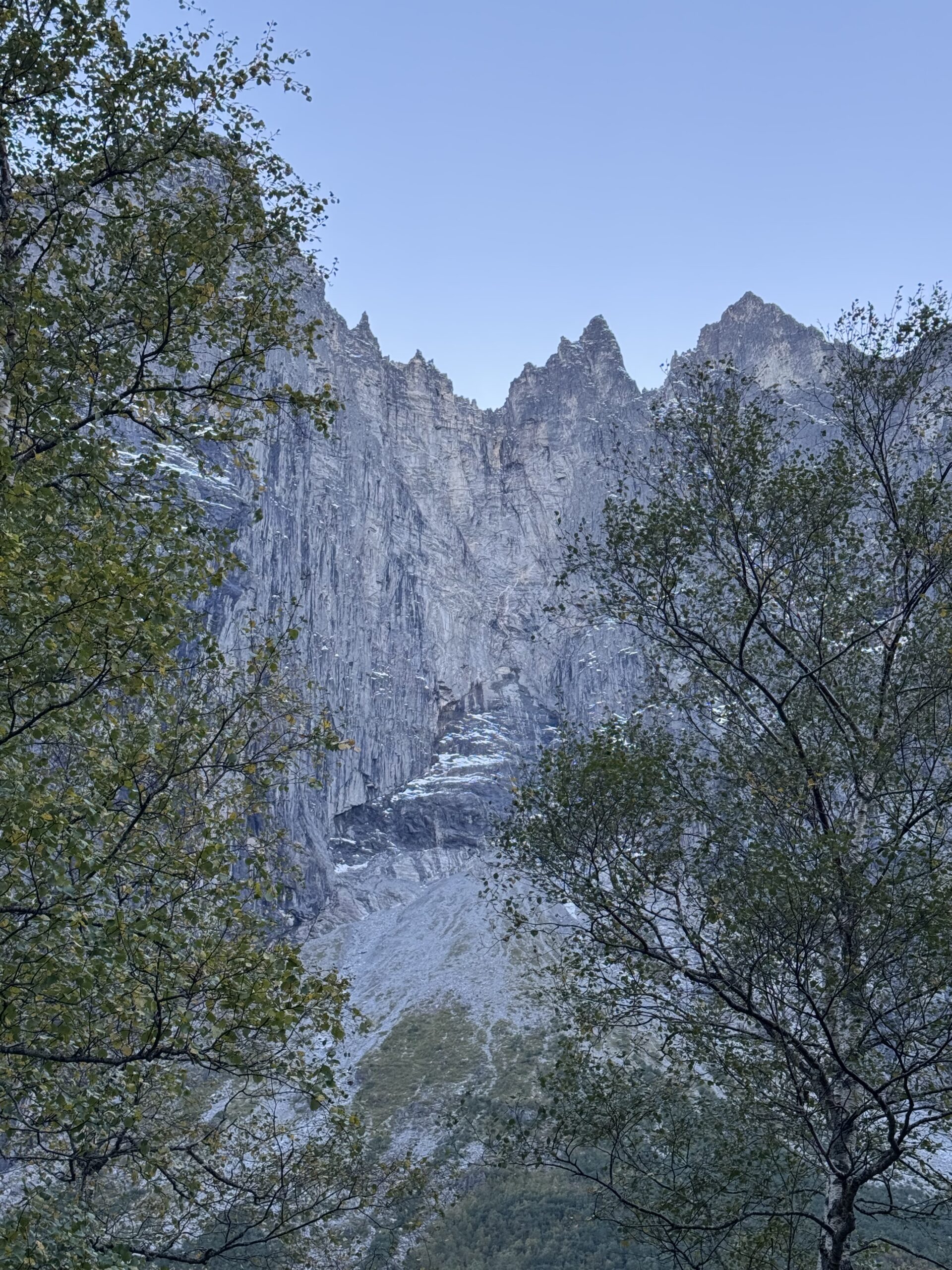 Trollveggen: Parada en la base de la pared vertical más alta de Europa.